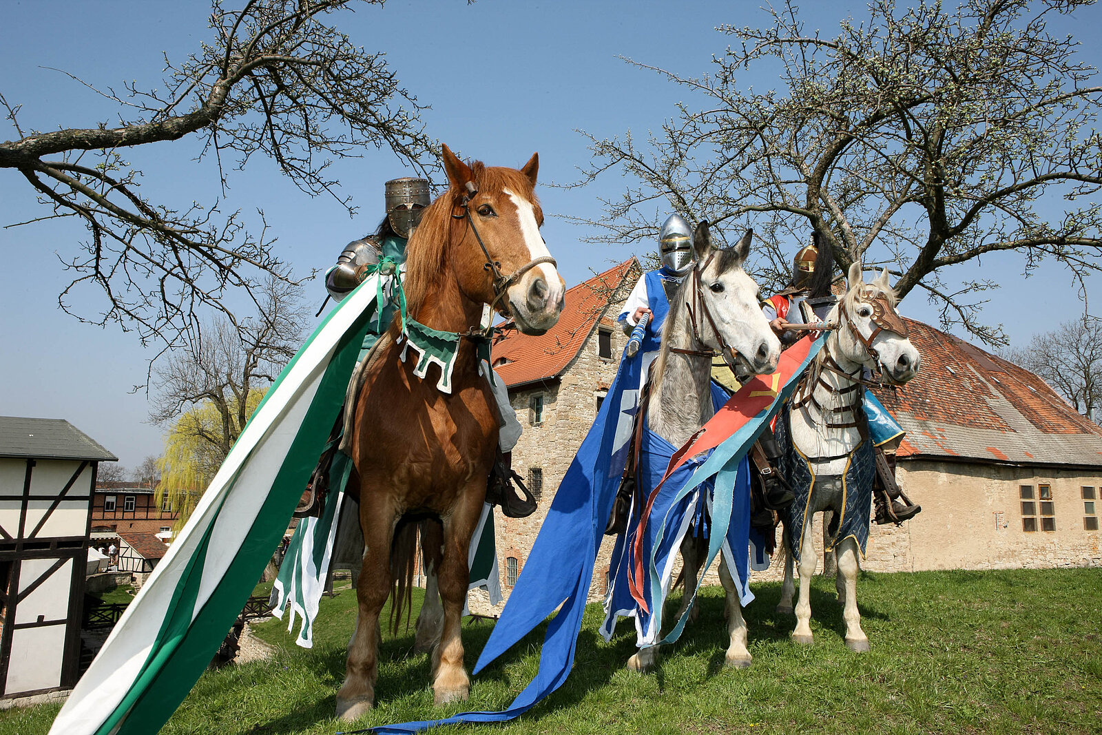 An diesem Aprilwochenende stehen Handwerker- und Krämerstände im weiten Rund, Tavernen, Garbrätereien und Bäckereien mit ihren Spezialitäten dürfen nicht fehlen und ein facettenreiches Programm aus Musik und Gaukelei klingt von einer hölzernen Bühne herab. Mittelalterliche Musik spielt die Formation Fidelius und der fröhliche Lautnhals zeigt seine Späße. Zwei Mal am Tage ruft dann der Herold die “TURNIERSPIELE” hoch zu Ross aus. Die Ritter aus unterschiedlichen Gegenden des Landes haben sich aufgemacht, um bei den Spielen zu stechen oder Lanzen zu brechen. Ein großartiges Spektakel für kleine und große Zuschauer, welches Samstag wie Sonntag jeweils um 13:00 und 16:30 Uhr gezeigt wird.