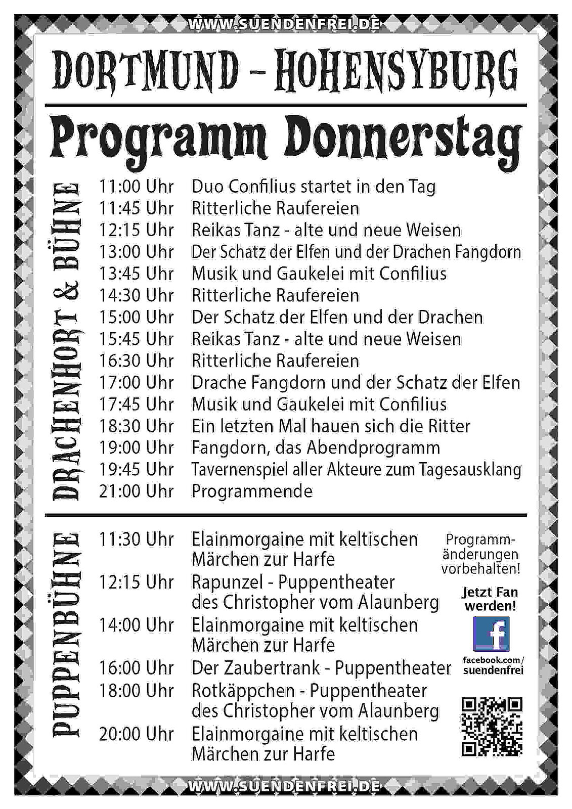 Von Donnerstag bis Sonntag erwachen die sonst recht verschlafenen Wiesen am Fuße der Ruine der Hohensyburg zu Leben. Ritter und ihre Gefolge lagern im weiten Areal, Handwerker und Krämer zeigen Markttage im Mittelalter.
