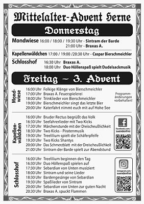 Mittelalterlich, gemütlich, mit viel Feuer, leuchtenden Sternen, illuminierter Schlossfassade und einem Musik- und Gaukelei- Programm aus der guten alten Zeit - so wird der Mittelalter- Advent im Schloss Strünkede und damit für alle, die eine besinnliche Adventszeit suchen, eine gute Adresse.