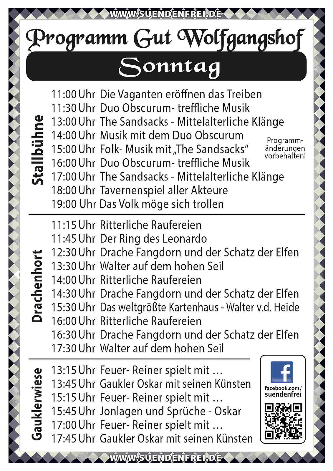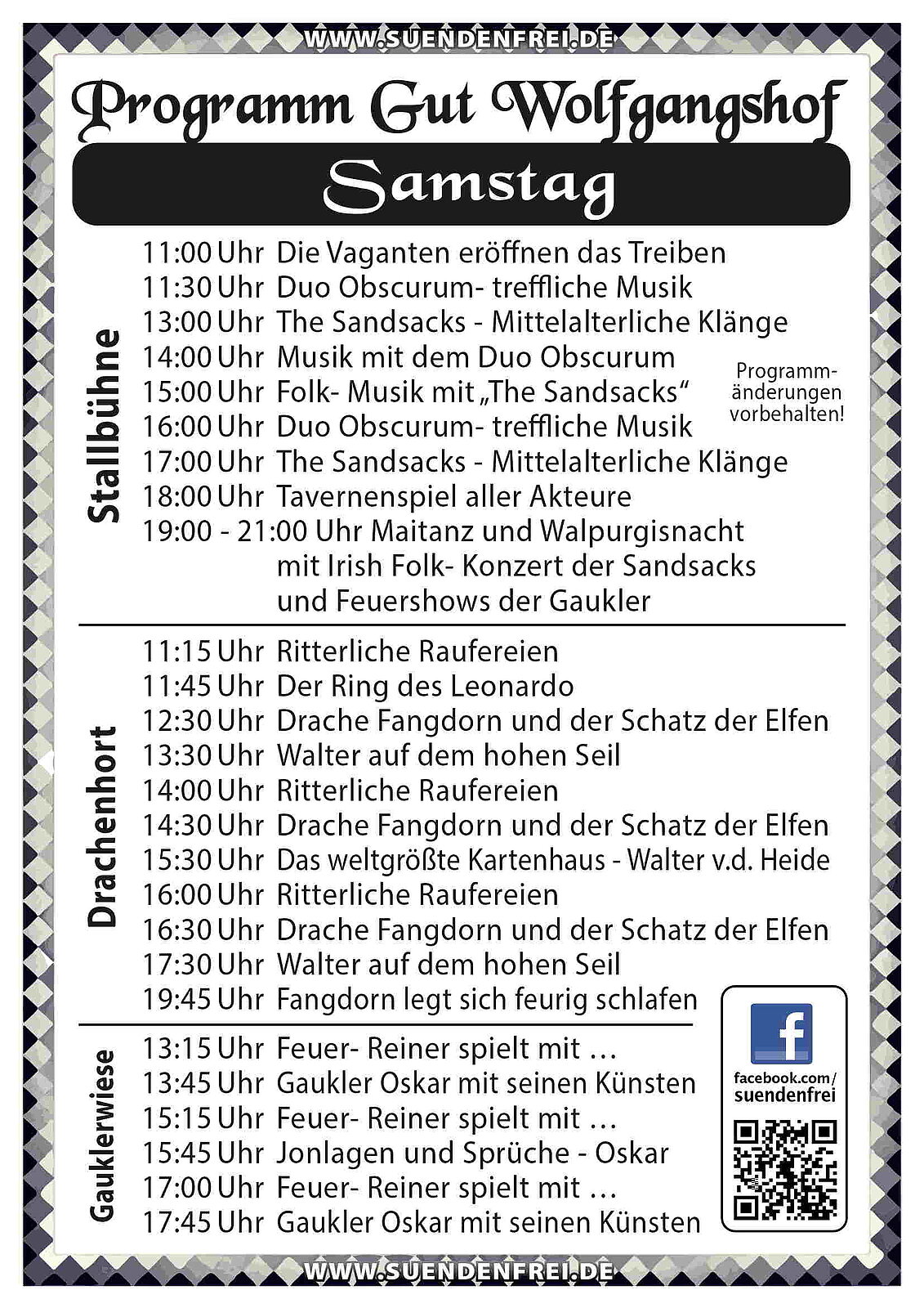 Die Besucher können sich nicht nur auf die Drachenshow, sondern auch auf zahlreiche bunte mittelalterliche Stände und ein schönes Unterhaltungsprogramm freuen. Auf den Bühnen und zwischen Tischen und Bänken treten unter anderem der Gaukler Oskar, die Spielleute "The Sandsacks" und "Duo Obscurum" sowie der Feuerspucker Reiner auf.