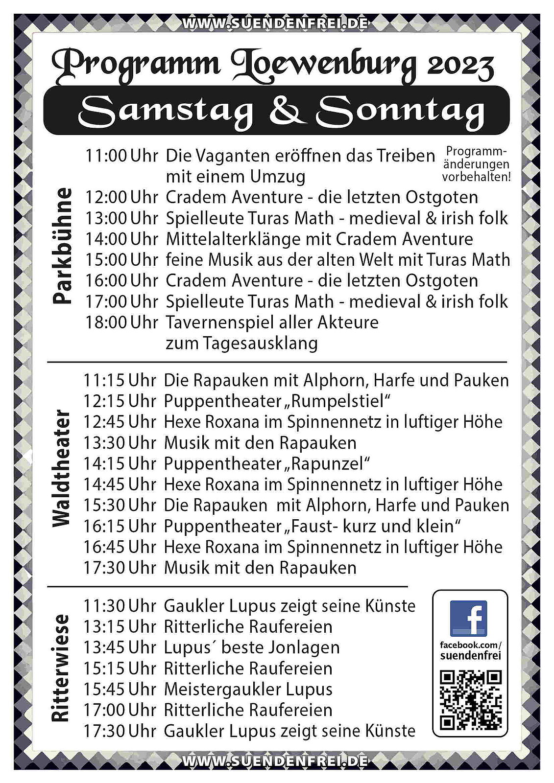 Fröhliche Gaukler, fahrend Musikanten und Minnesänger, wackere Ritter, Zauberer und Puppenspieler freuen sich auf viele Besucher aus nah und fern.