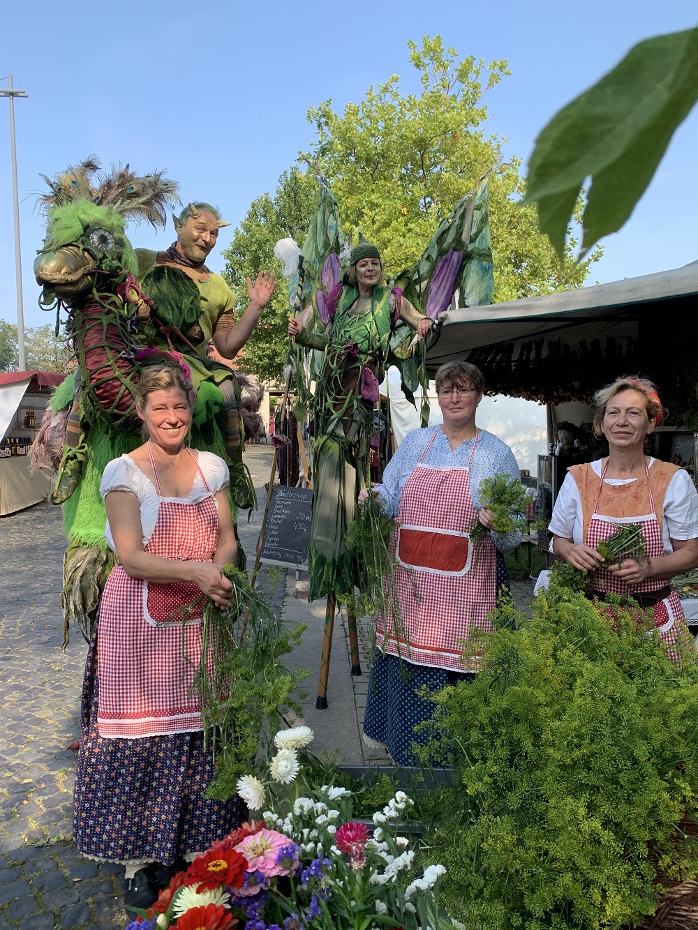 Den mittelalterlichen Bereich findet man wie eh und jeh im Garten des Schlosses: gut zwanzig Handwerker- und Händlerstände, schöne Gastronomie und eine Bühne werden dort aufgebaut. Im Programm stehen in diesem Jahr die Spielleute Donner und Doria, die Barden Mikarus und der Gaukler Arne Feuerschlund. Die Ritter sorgen wie immer für Recht und Ordnung.