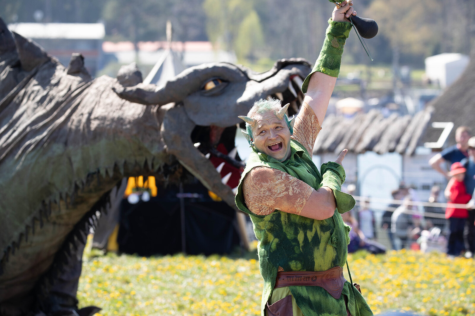 Auf der Bühne spielt die weitgereiste Band "Thuras Math" mittelalterliche Lieder auf Dudelsäcken und Trommeln und Gaukler Oskar zeigt seine Künste. Am Ufer des Sees liegt ein Wikingerschiff, das zum Mitfahren einlädt, während sich die Besatzungen an Land mit Rittern und deren Gefolgen eine Schlacht liefern. Zwischen Tischen und Bänken agieren Gaukler und Musikanten und hoch droben ist Hexe Roxana dabei, mit ihrem Besen das Fliegen zu lernen. Zudem zeigt sie Feuerkünste und artistische Magie im fünf Meter hohen Spinnennetz.