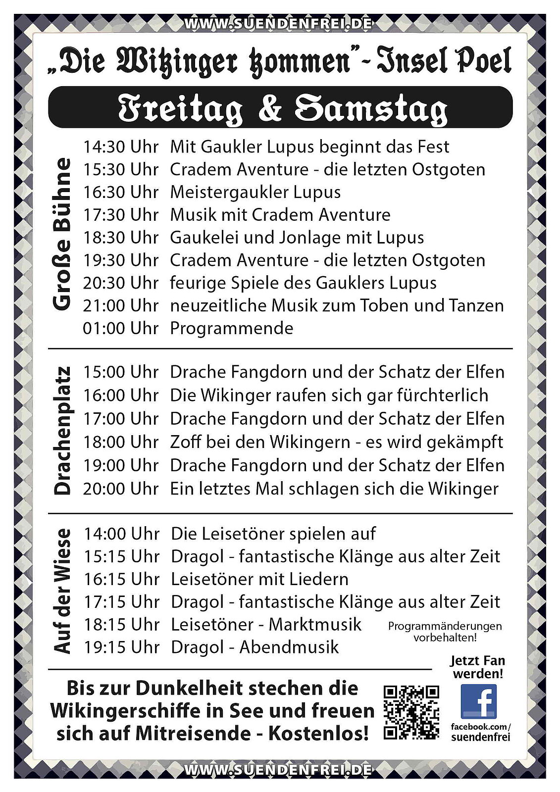 Auf der Bühne spielen unterschiedliche Bands und die Schiffe laden zum Mitfahren ein. Wikinger- Raufereien gehören ebenso zum Programm wie abendliche Feuershows.