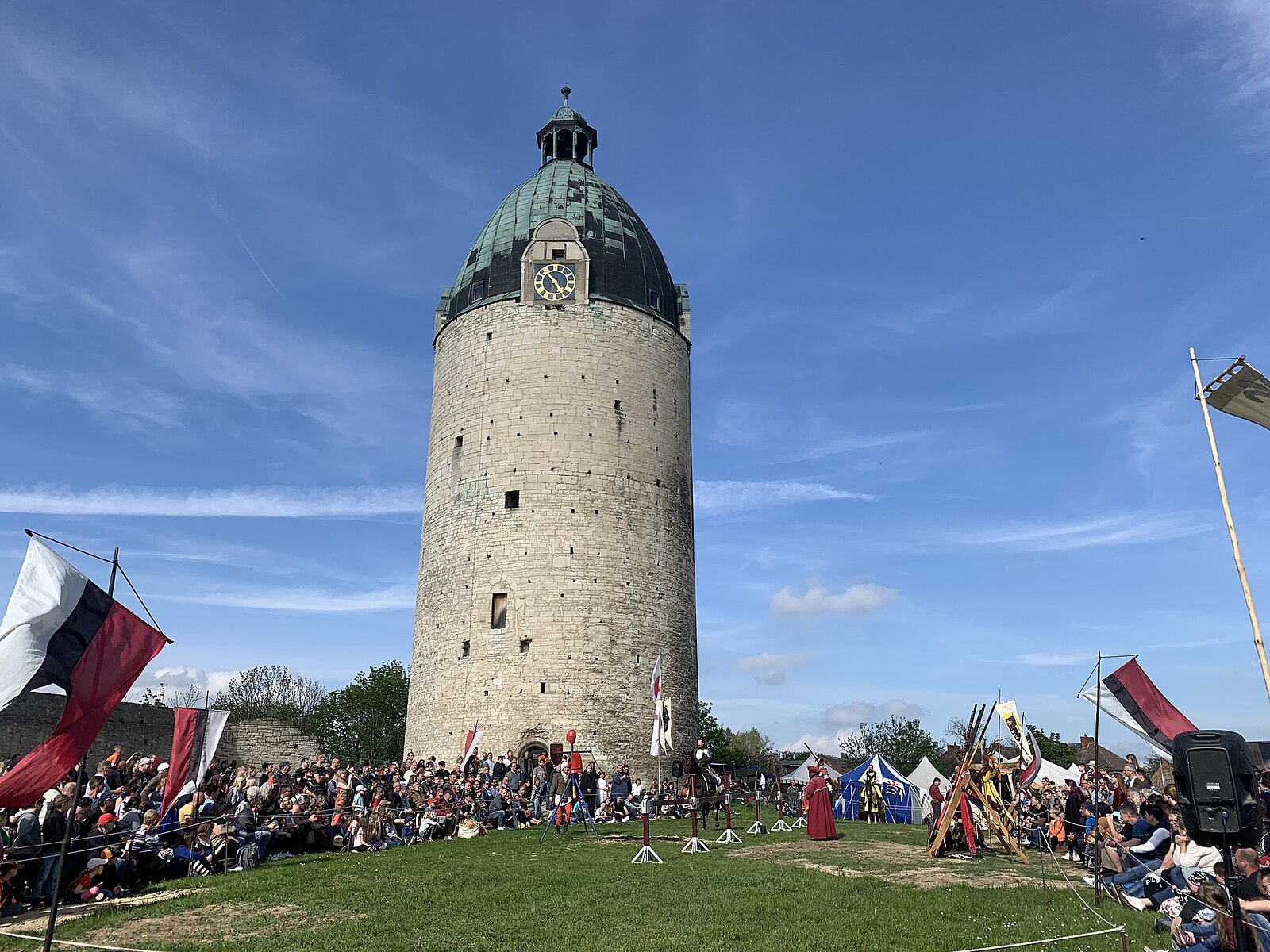 Ritter aller Herren Länder eilen herbei, um sich bei den zwei Turnieren (13:00 und 16:30 Uhr), die täglich stattfinden, im Lanzenstechen hoch zu Ross zu messen.