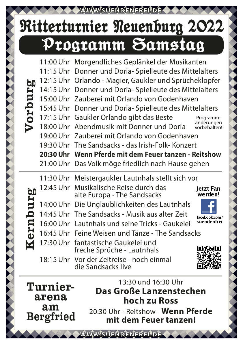 Turnierzeiten: Turnierzeiten jeweils 13:00 und 16:30 Uhr, Samstag auch 20:30 Uhr