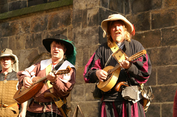 Auf der Bühne spielt die weitgereiste Band "Tamburo Bant Skaldar" mittelalterliche Lieder auf gewaltigen Dudelsäcken und Trommeln. Im süßen Burghof zeigen der Puppenspieler Christopher vom Alaunberg seine Märchen, Gaukler Orlando seine Zaubertricks und das Theater Sorgenfrei seine Seifenblasen- Shows. Zwischen Tischen und Bänken agieren Gaukler und Musikanten, wie "Friedrich" oder "Tankredo und Lothar". Auf dem Planhof oberhalb der Freilichtbühne und in der Burg wird gehandelt, gearbeitet und beköstigt wie vor 600 Jahren. Hier treffen sich ab und an auch ein paar Rittergruppen, um in einer Arena ihre Kräfte und Schwertkampf- Künste zu messen. Ein Osterspaziergang ins Mittelalter, zu dem wir Jung und Alt herzlich einladen.